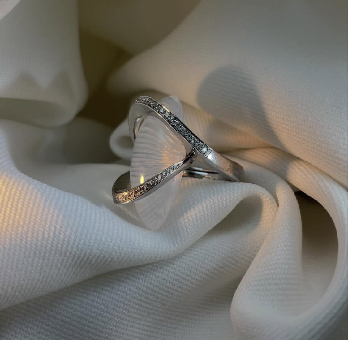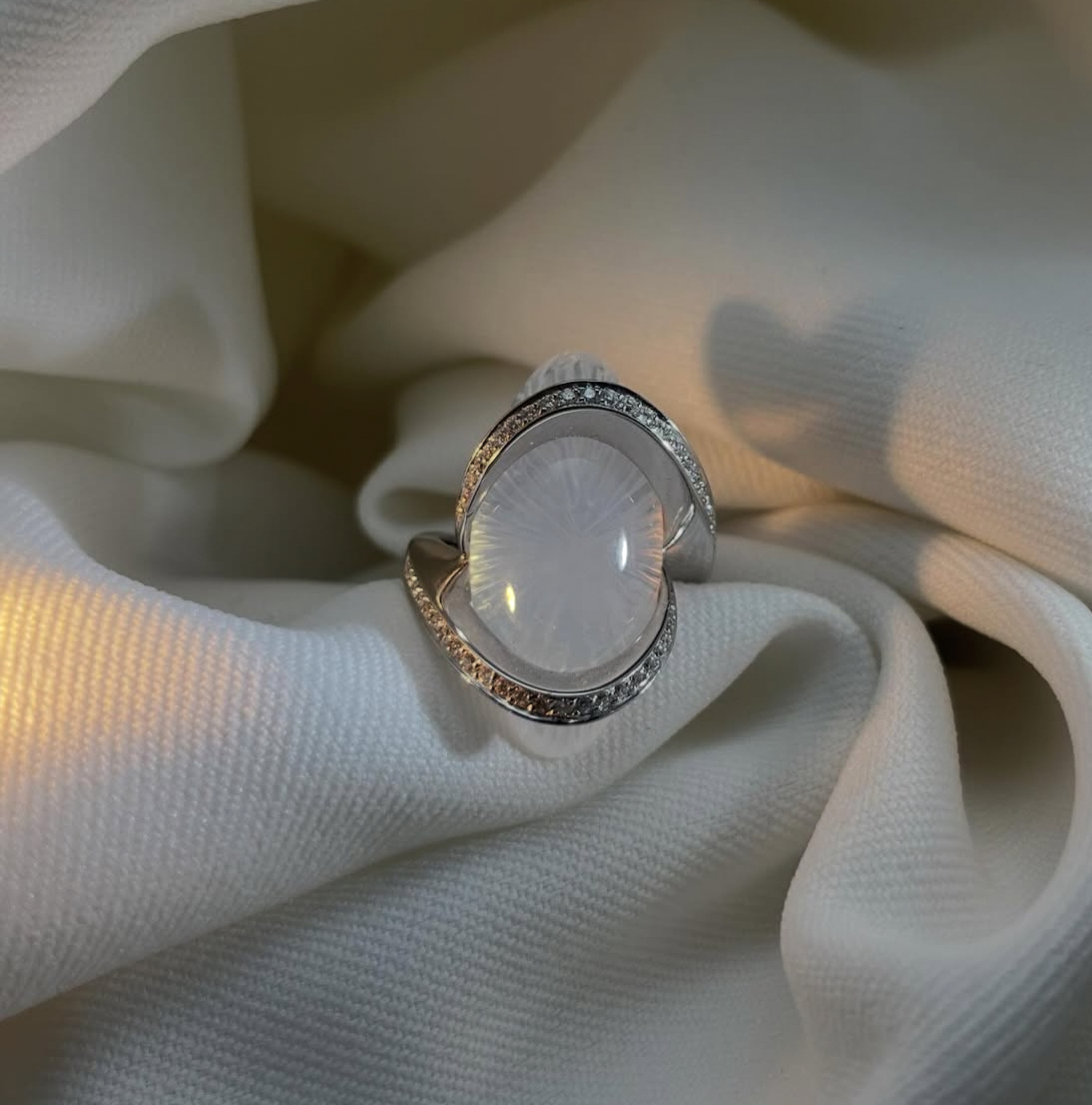 Bague quartz taillé au laser et diamants – Dépôt-vente