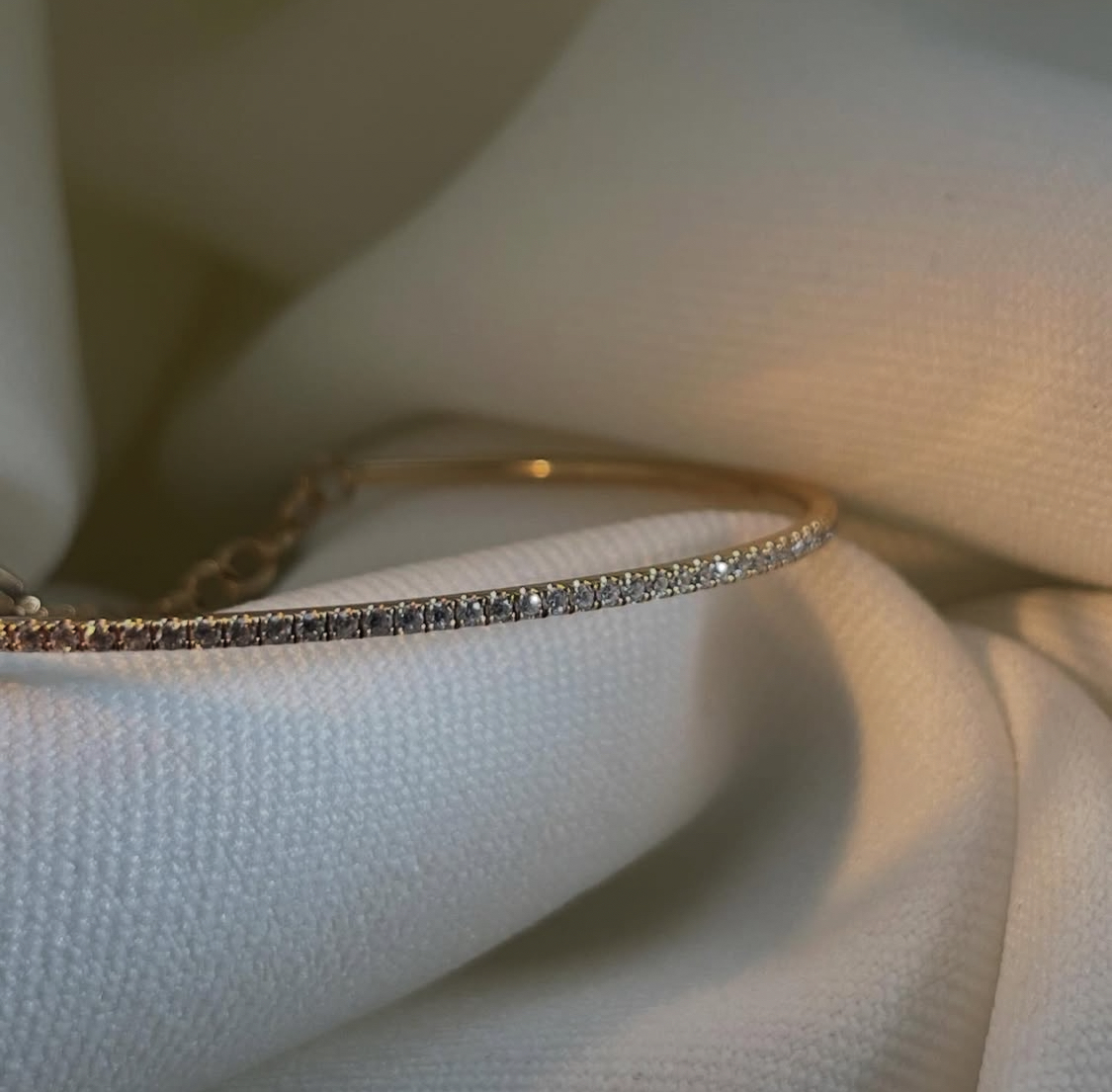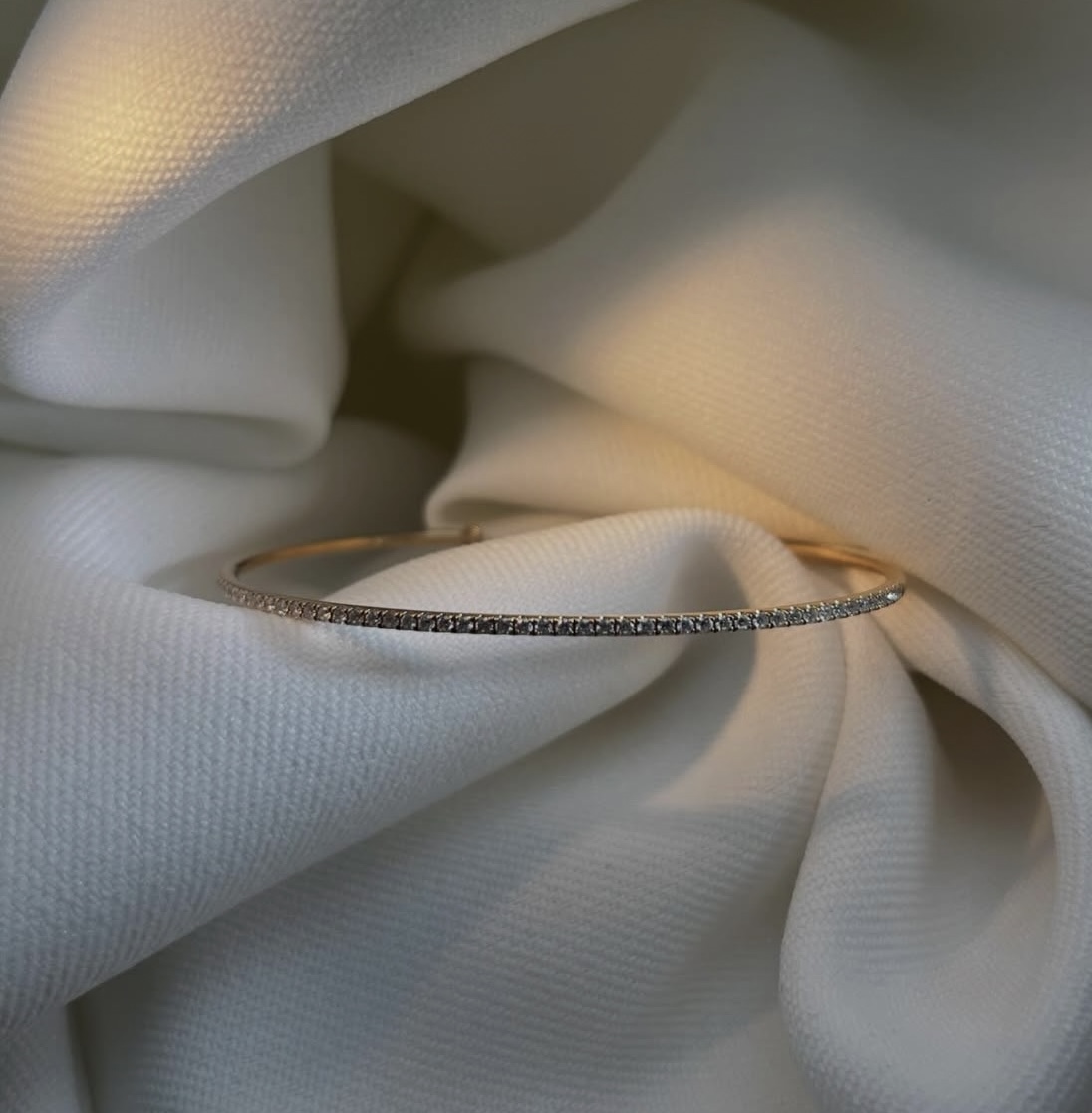 La ligne de diamants, soigneusement sertie, capte la lumière avec subtilité et apporte une brillance raffinée sans excès. L’or rose 18 carats, apprécié pour sa teinte chaleureuse et tendance, confère à ce bracelet une allure contemporaine tout en restant élégante. Ce contraste délicat entre le métal précieux et les pierres fines en fait un accessoire incontournable pour celles et ceux en quête d’un bijou à la fois discret et précieux.
